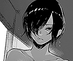 Touka seems to be confident in the beginning of the chapter (ever since the virgin talk, to be honest), but she looks embarrassed when she takes off her bra. According to the Japanese script of this chapter found in this page, Kaneki tells her, You’re beautiful